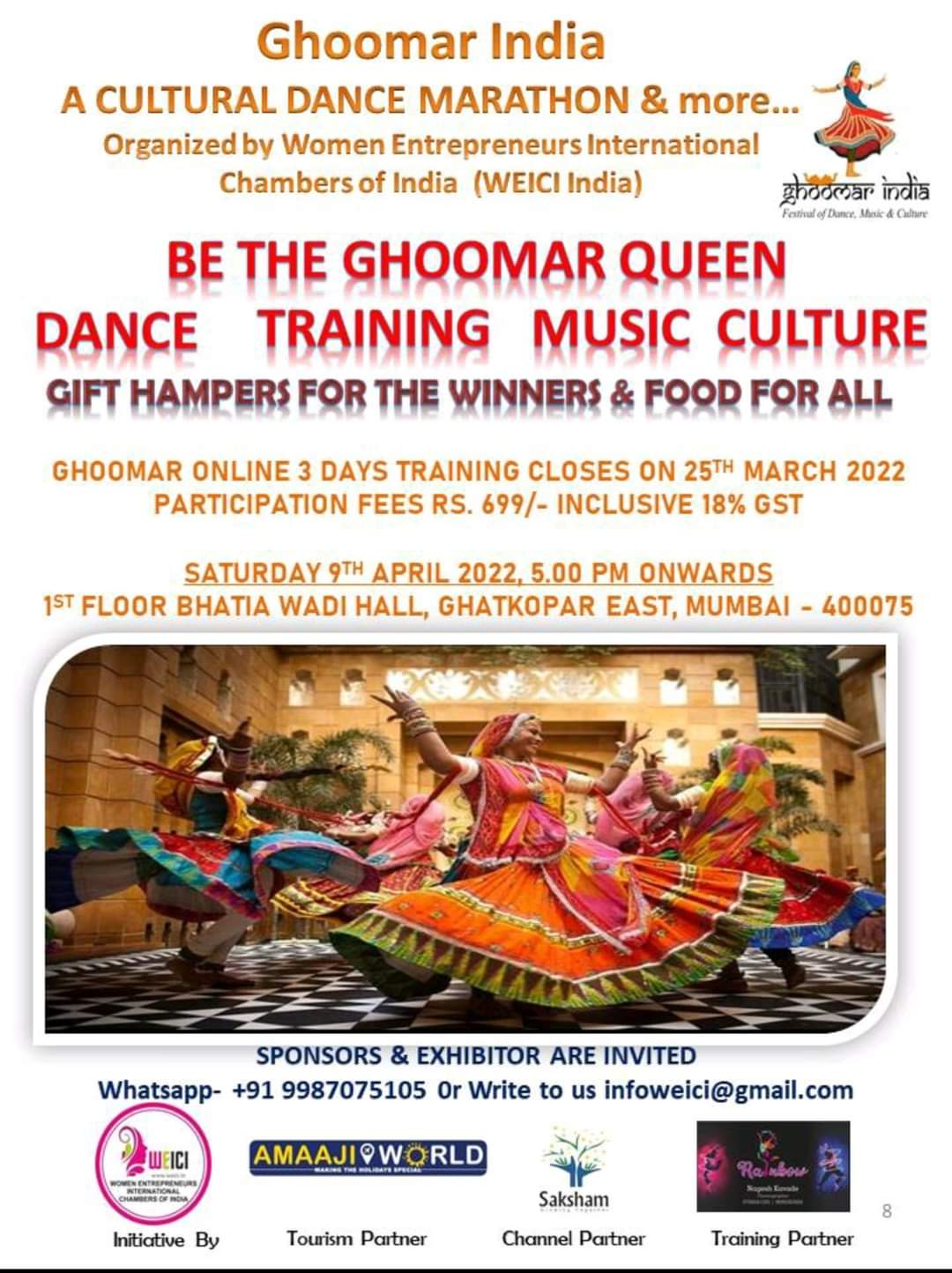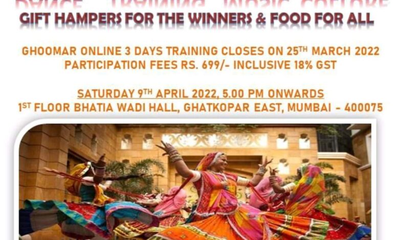 Ghoomar India- A Cultural Dance Marathon will be held on 9th April 2022 at Bhatiawadi Hall, Ghatkopar East, Mumbai